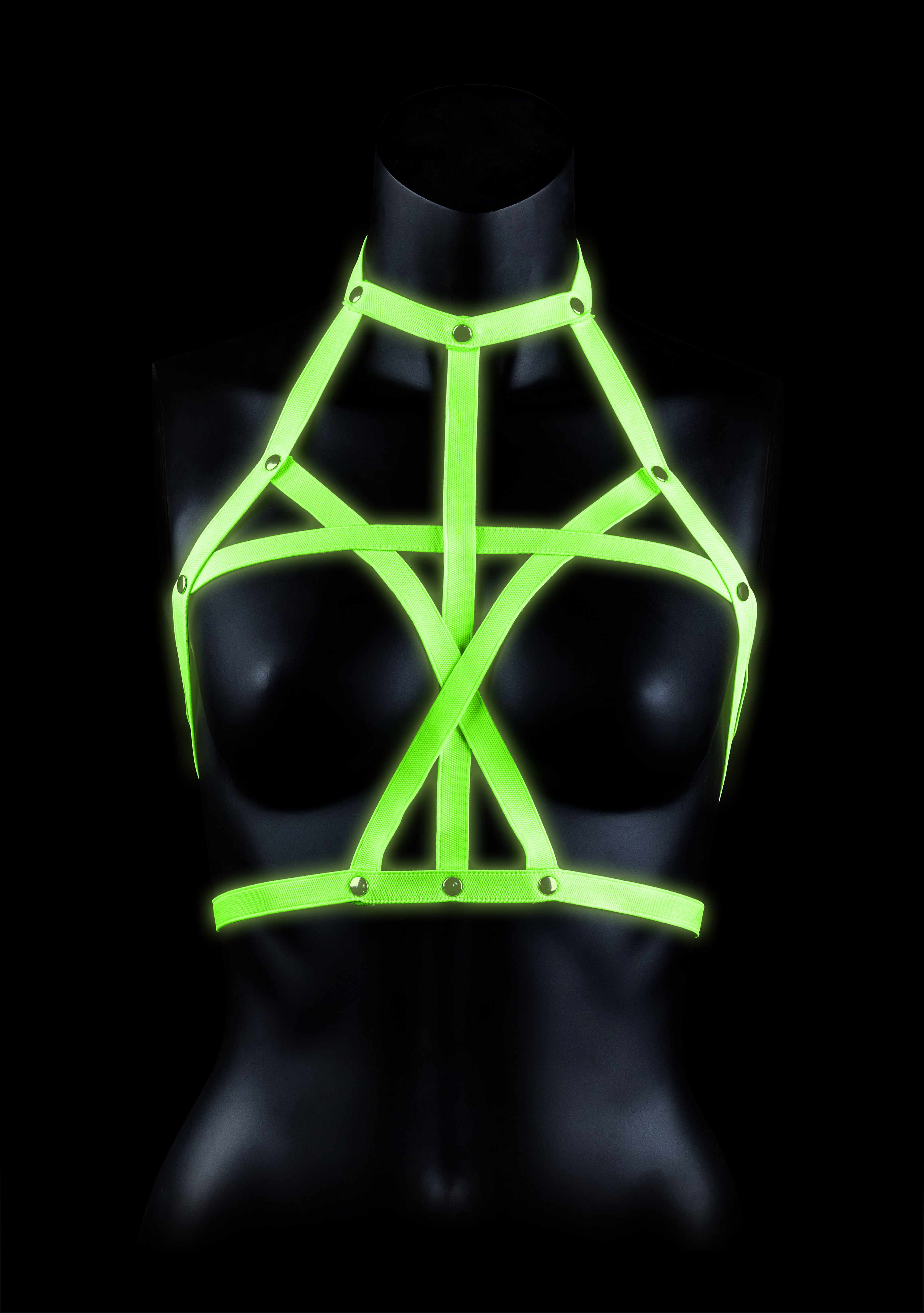 Sometimes less is more, and this sexy harness is there to prove it! Make a statement with this full-body harness. The harness is adjustable so it fits all body types. Ouch! Glow-In-The-Dark products must be activated with the sunlight before enjoying it in the dark.